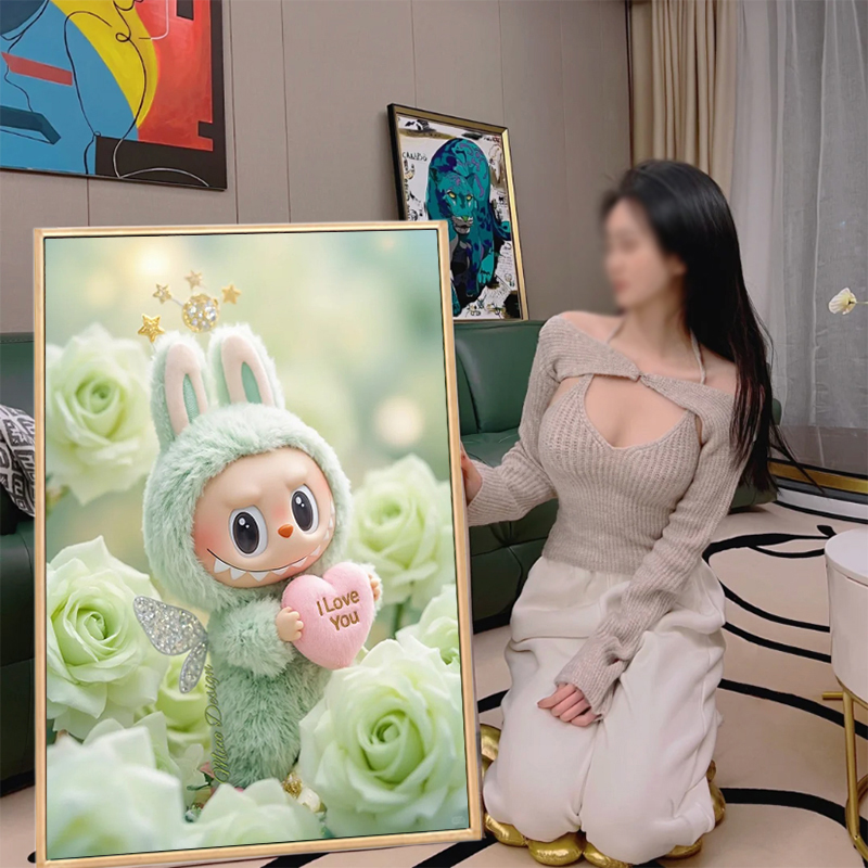 夏日粉绿玫瑰拉布布2025新款钻石画治愈diy手工带框装饰画十字绣