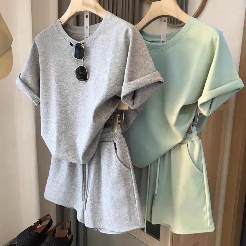 2025夏季新款女士运动服套装休闲短袖短裤时尚跑步小个子两件套