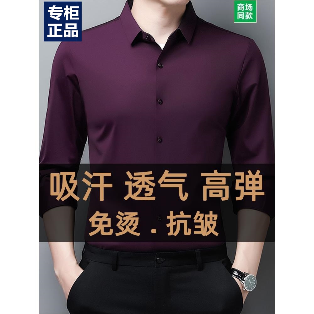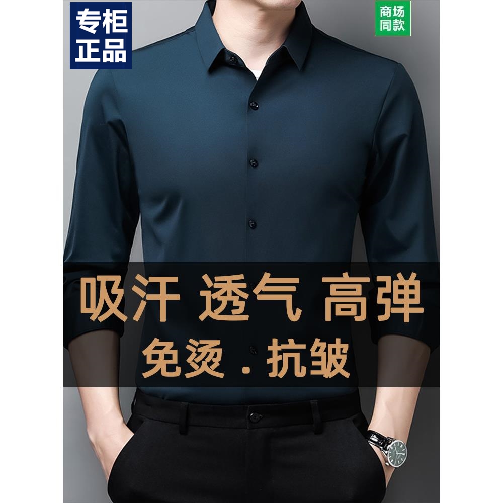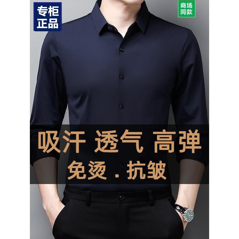 新款无痕衬衫男长袖高级感春秋新款中年商务休闲免烫弹力衬衣男士