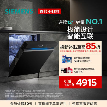 西门子极净魔盒14+2套嵌入式洗碗机家用全自动消毒官方黑白色XB33