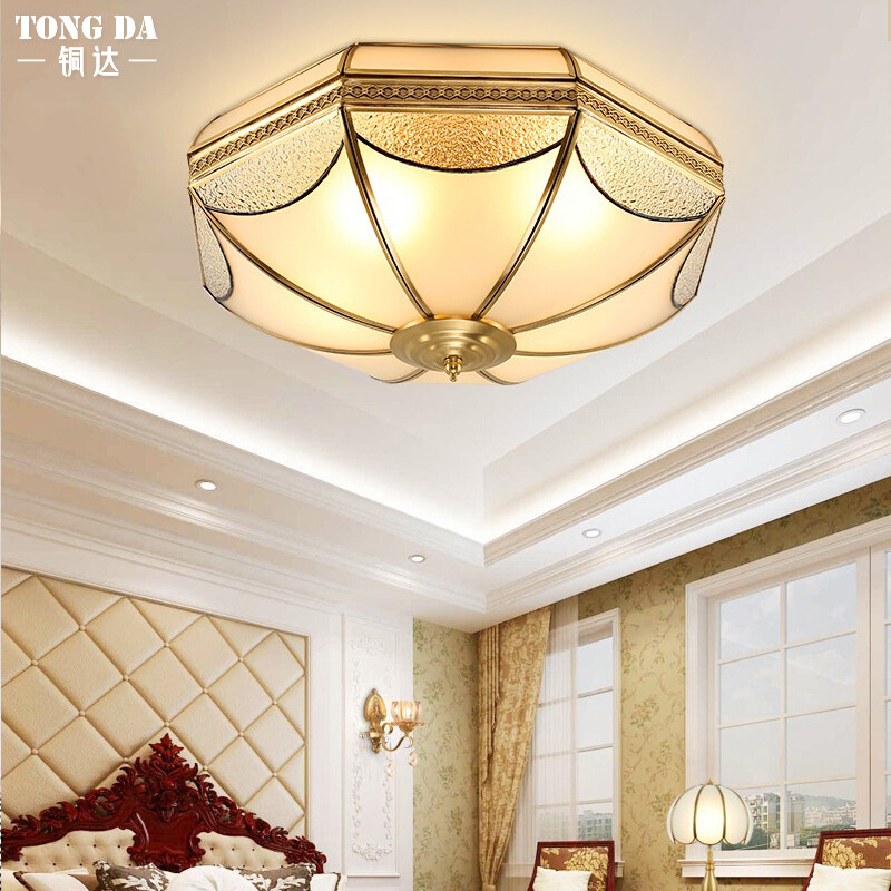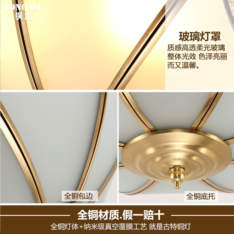 美式简约卧室房间全铜吸顶灯别墅大气楼梯门口复式楼过道阳台灯具
