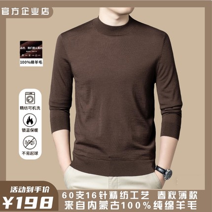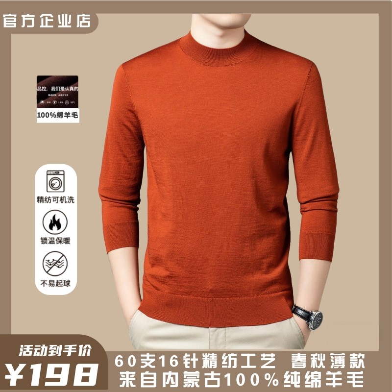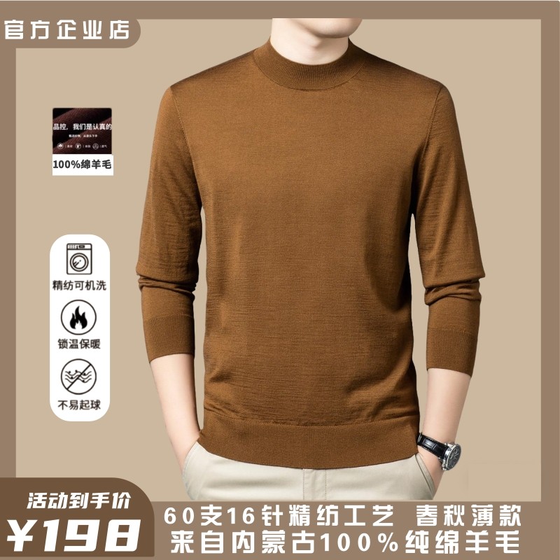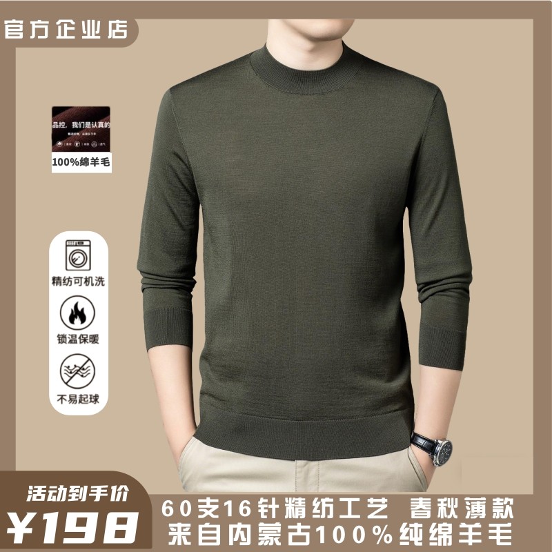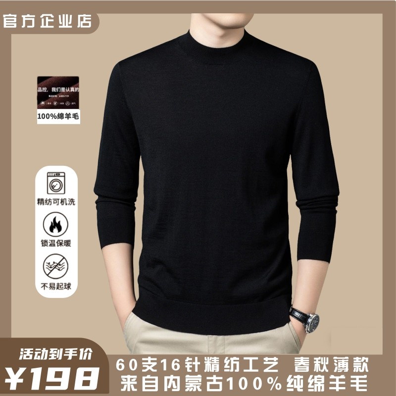 【60支精纺薄款】鄂尔多斯市100纯羊毛衫男士半高领可机洗羊毛衫