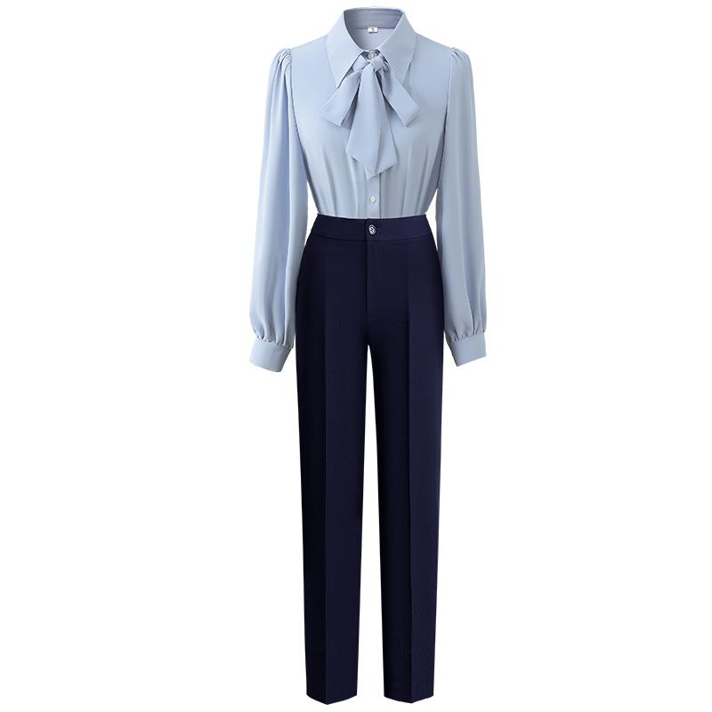 蓝色衬衫上衣女2025春季新款时尚洋气减龄气质ol通勤职业衬衣套装