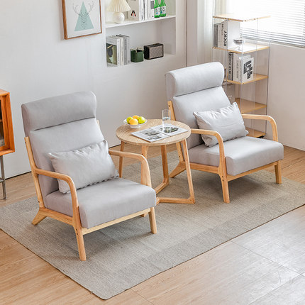 北欧小户型客厅阳台卧室办公休闲单人售楼处会客洽谈实木沙发组合