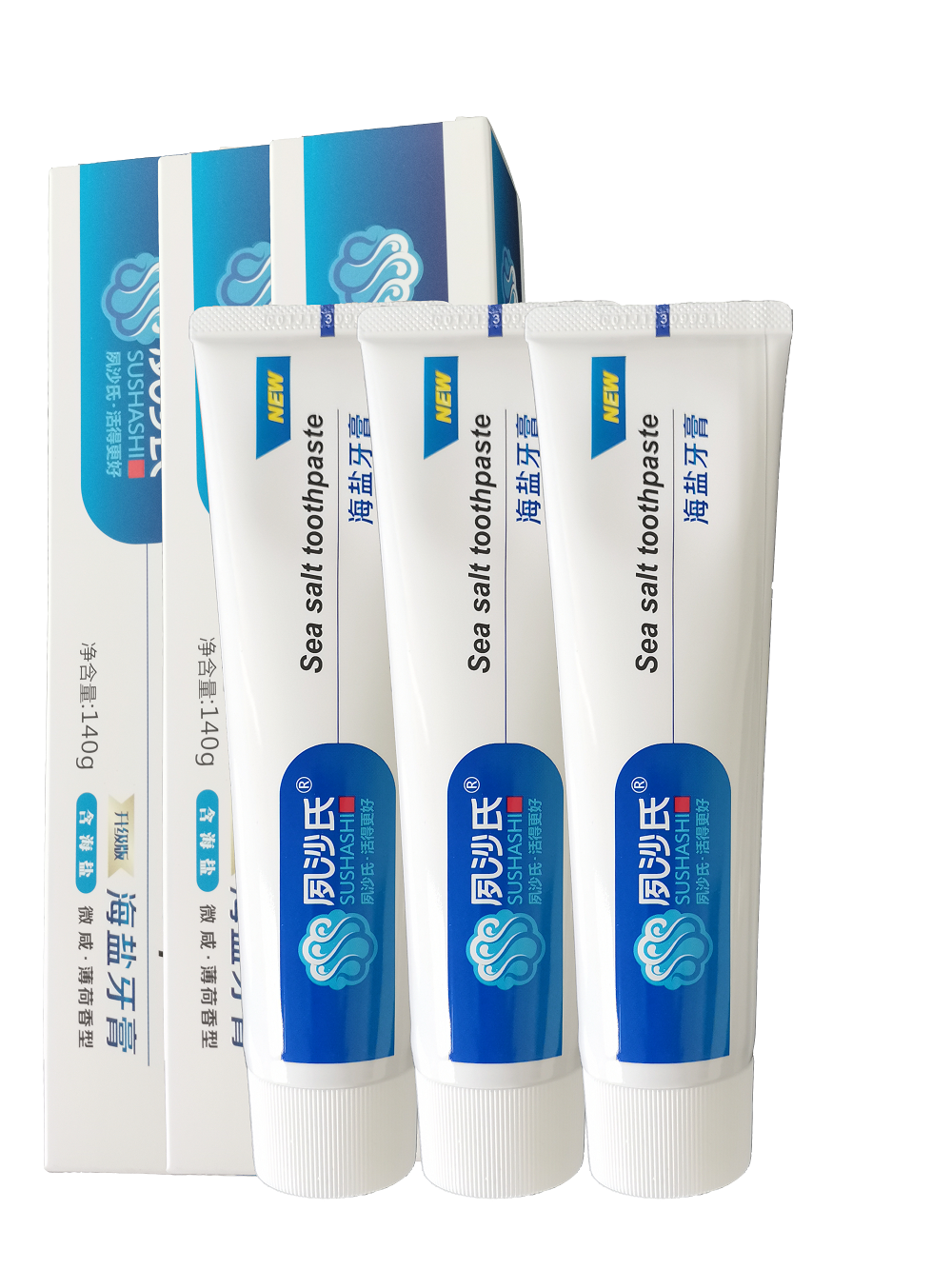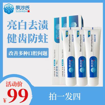 夙沙氏海盐牙膏护牙龈去烟渍美白清新口气防蛀牙家庭套装包邮