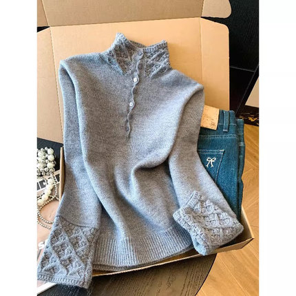 高领毛衣女冬季超好看钩花针织衫