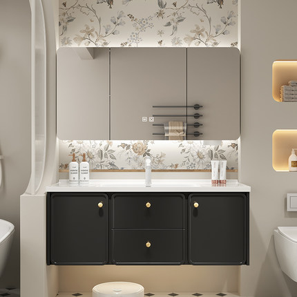 卫浴陶瓷一体洗漱盆奶油风卫浴柜组合卫生间洗手抗污洗脸盆柜组合