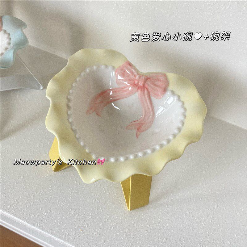 【少女喵】猫碗陶瓷高脚护颈加高增高架猫咪水碗零食碗猫食盆狗碗