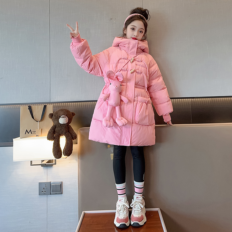 女童棉服外套2025新款洋气小孩冬装棉袄加厚中大儿童羽绒棉衣长款