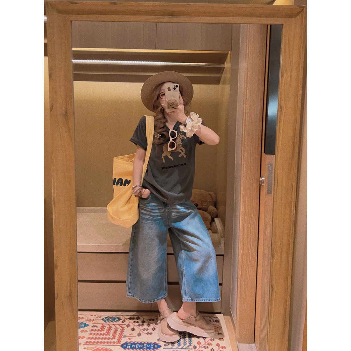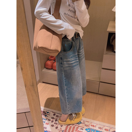 Yukiss3.3/9.5折【没想到这么显瘦!复古水洗浅蓝色牛仔七分裤】