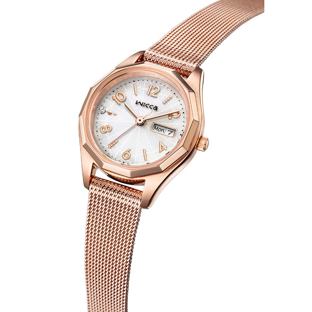 CITIZEN 西铁城手表女士WICCA 太阳能技术星期和日期网格粉红金 K