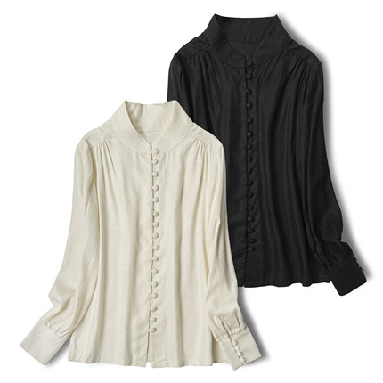 优雅小资法式轻奢高格调100%桑蚕丝绢丝小立领衬衫女真丝秋款内搭