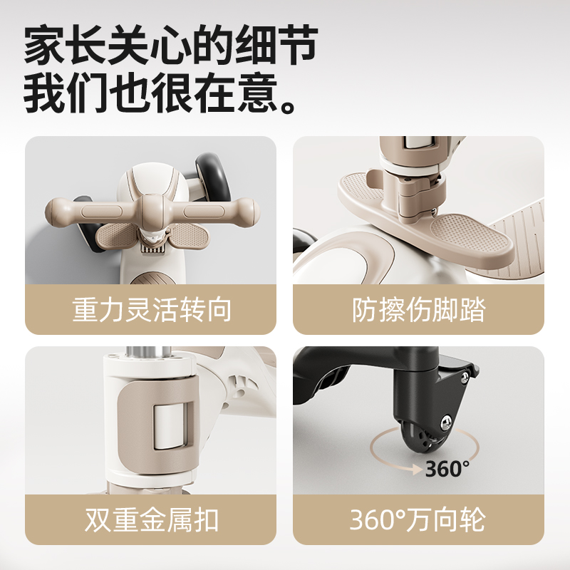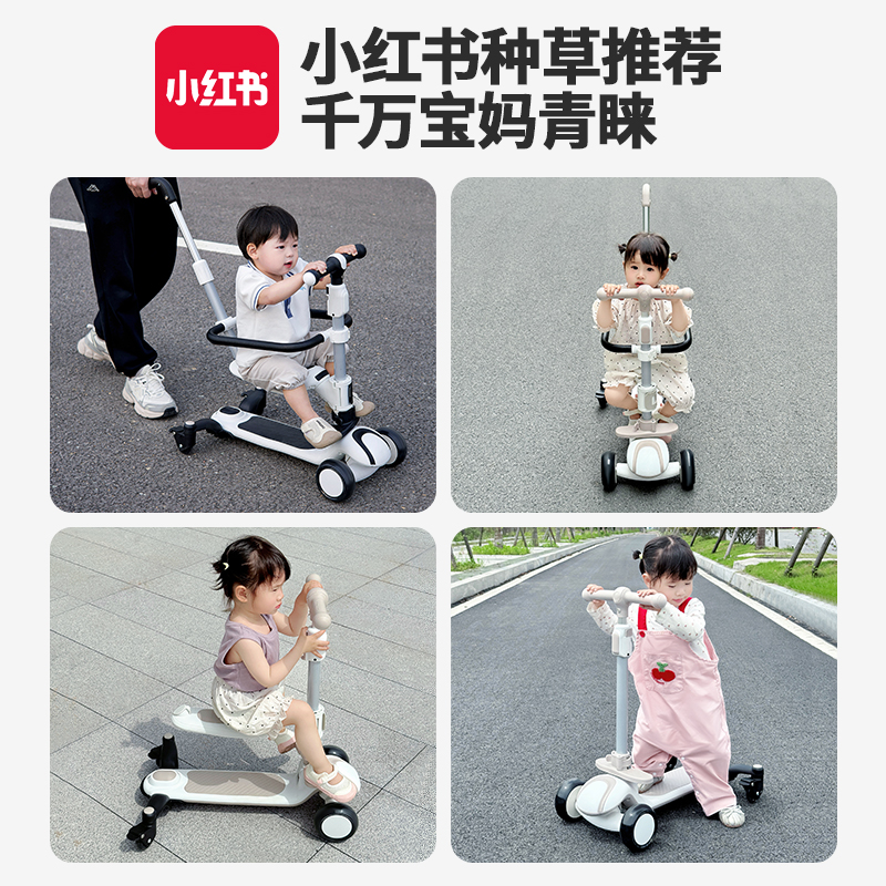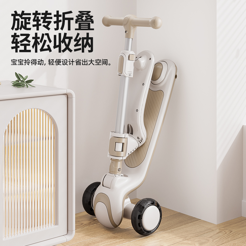 巧乐熊儿童滑板车1到3-6岁宝宝三合一可坐可骑可折叠多功能溜溜车