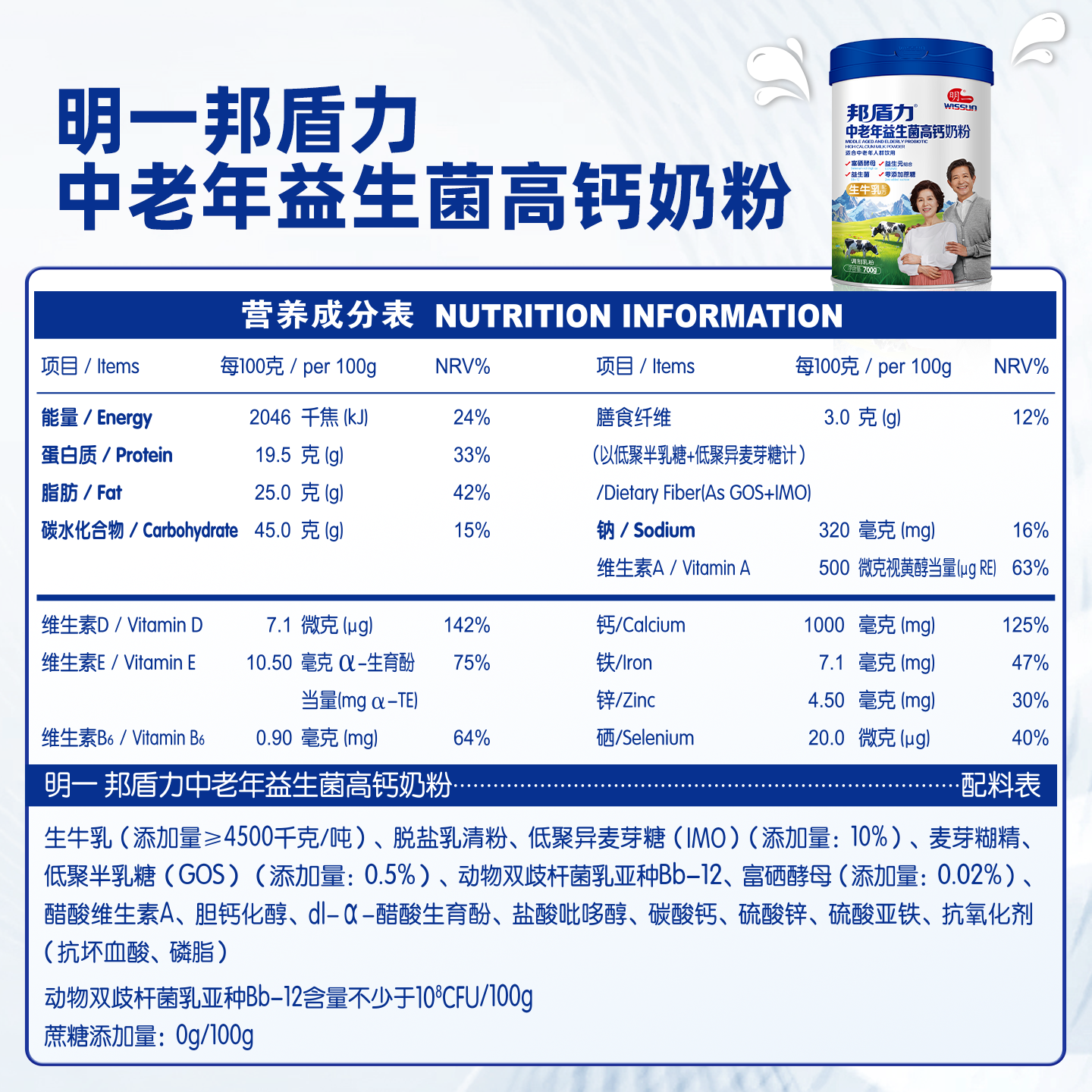 【10月产】明一中老年奶粉益生菌富硒高钙不添加蔗糖700g×6罐