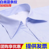 蓝色细条纹加绒加厚保暖衬衫女士方领正装银行工作服大码工装衬衣
