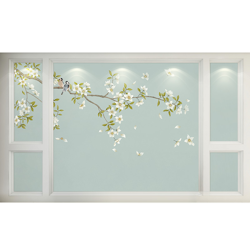 现代简约花鸟墙纸新中式墙布客厅卧室电视背景墙壁纸影视装饰壁画