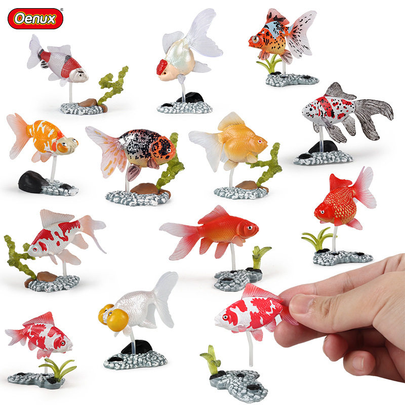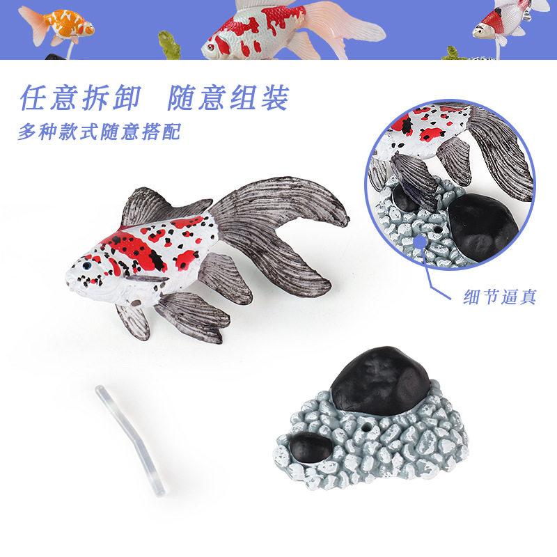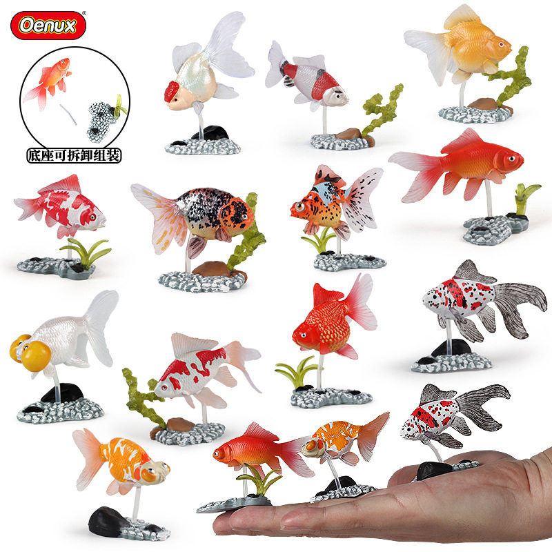 儿童仿真实心迷你金鱼套装带底座模型金枪鱼海底动物玩具摆件