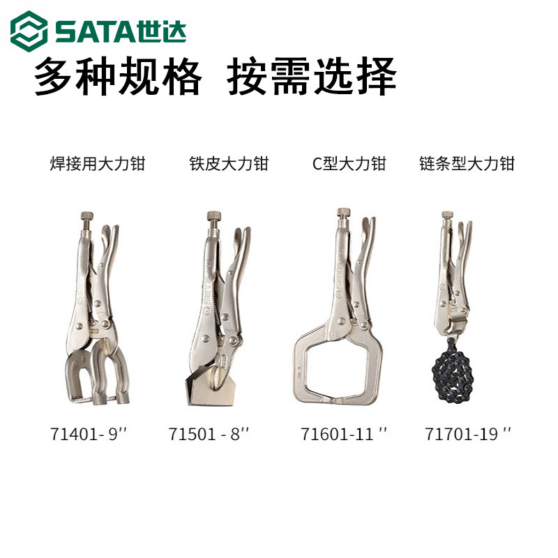 SATA世达大力钳焊接专用铁皮C链条型金可调节微调特种夹持零件工