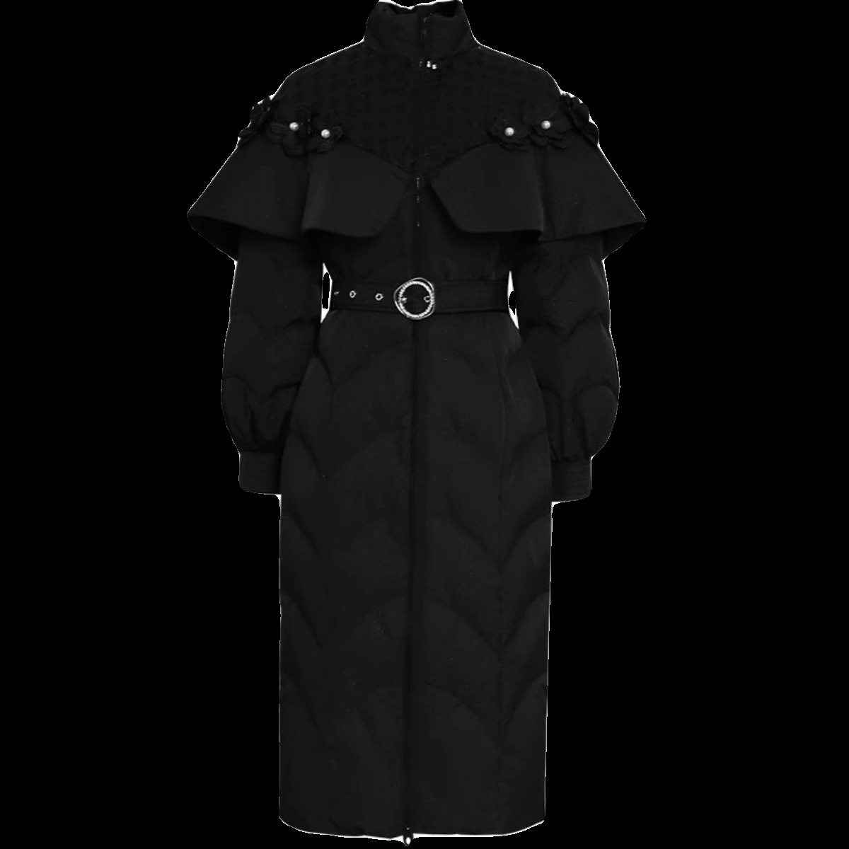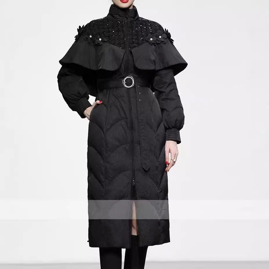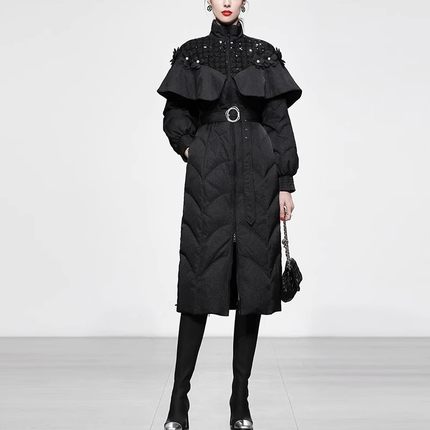 冬季新款女装黑色收腰中长款白鸭绒羽绒服加厚修身中长羽绒服