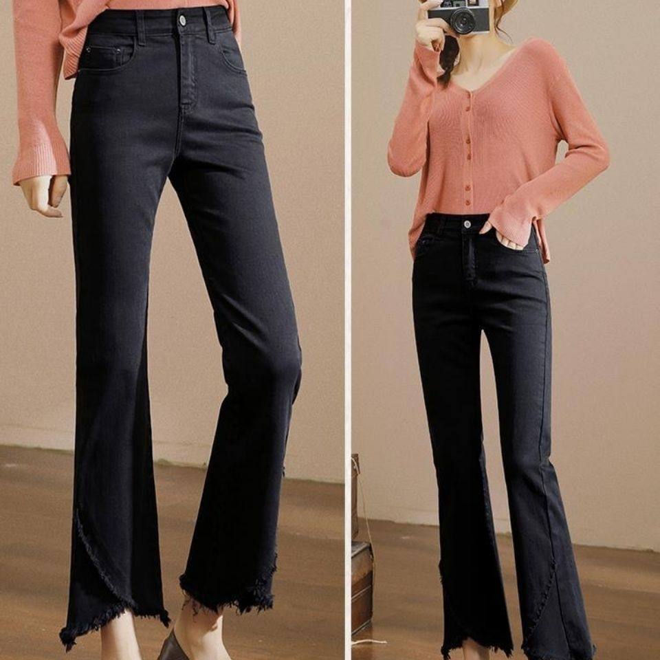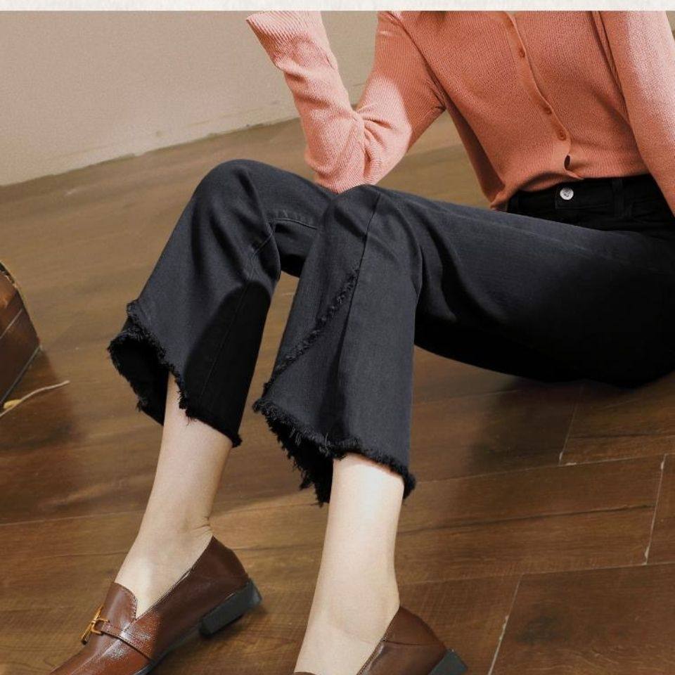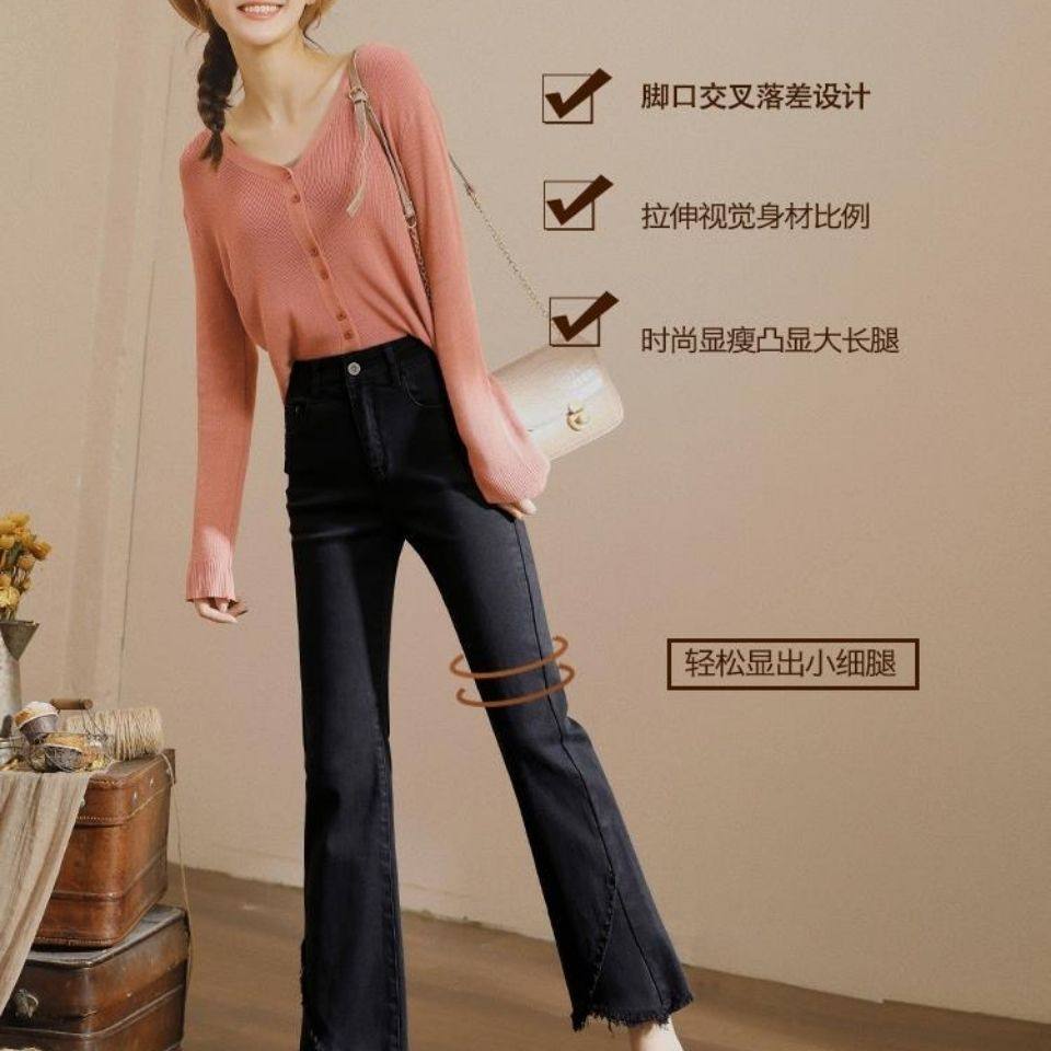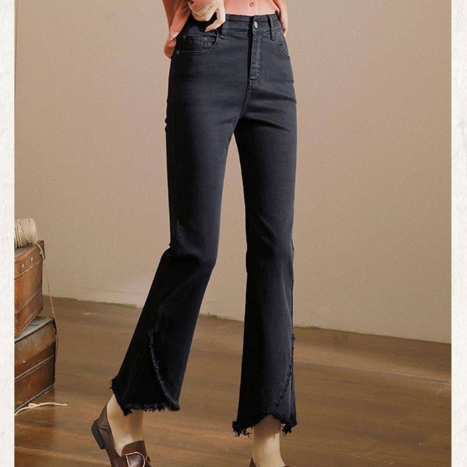 九分裤微喇牛仔裤女修身高腰七分牛仔裤女新款显瘦九分黑色喇叭裤