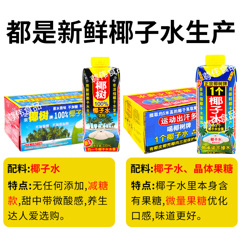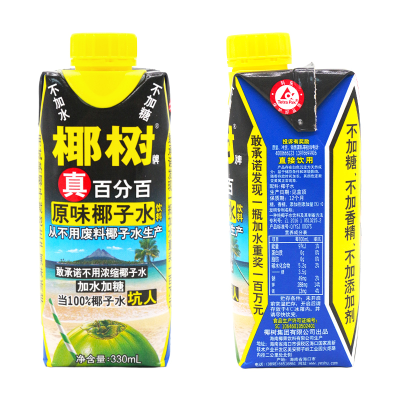椰树椰子水330ml*24盒装整箱利乐钻装饮料正宗椰树椰子水海南特产