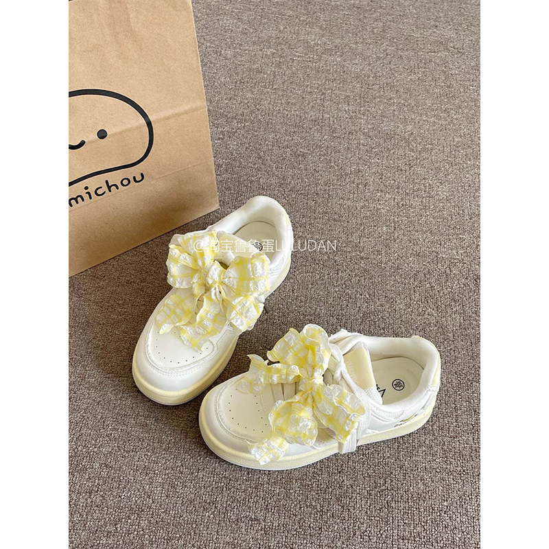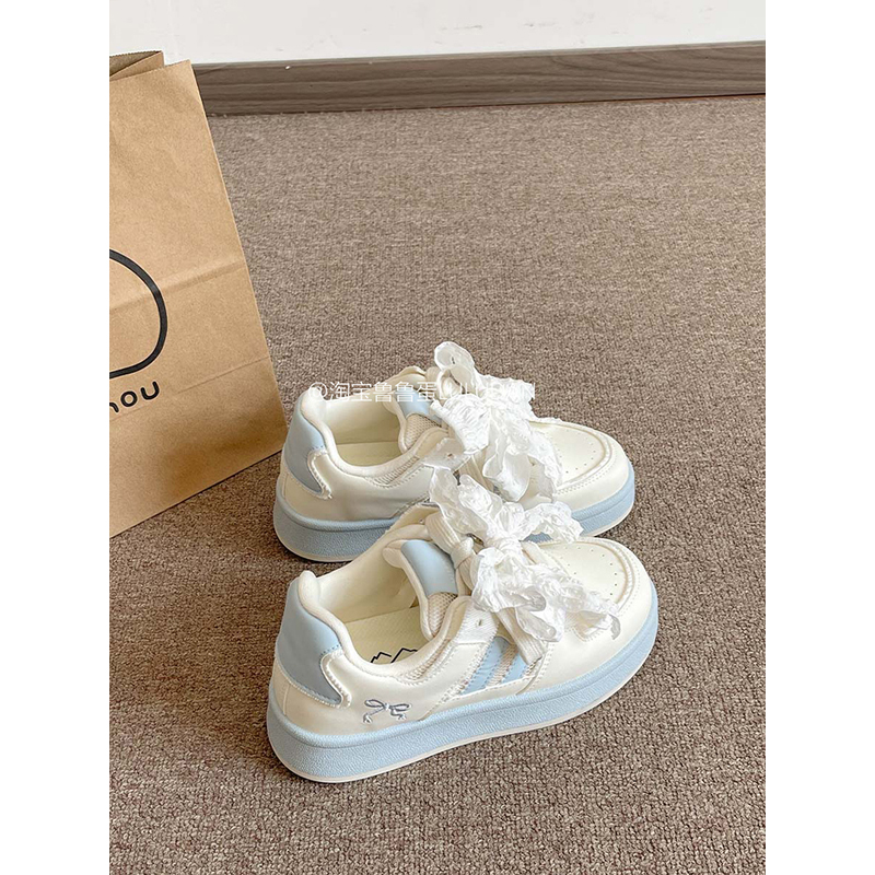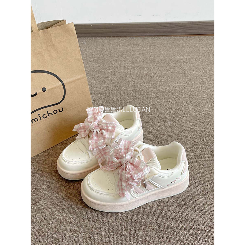 香港真皮蝴蝶结厚底板鞋女款2025新款春夏百搭小白鞋韩系鞋子圆头