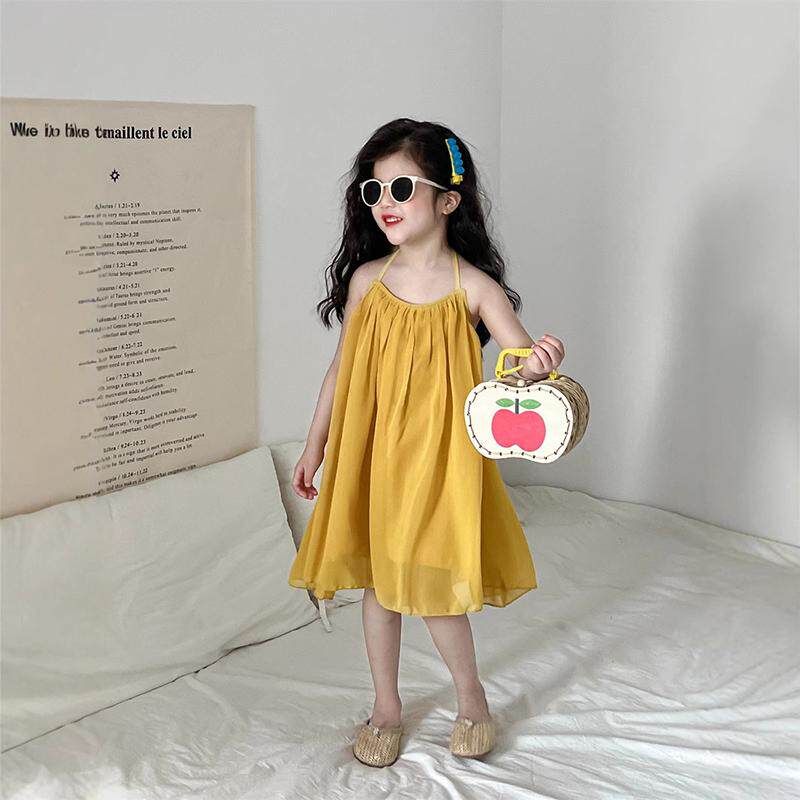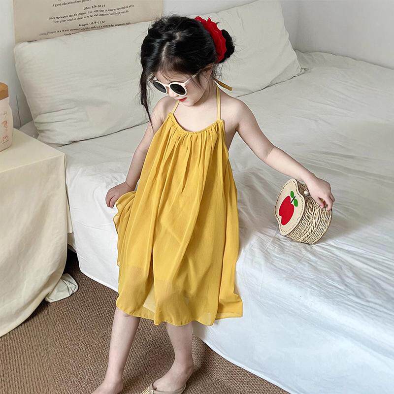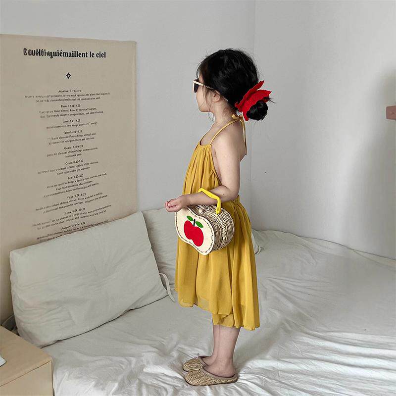 女童度假沙滩公主裙2026夏女宝露背吊带连衣裙夏季洋气黄色背心裙