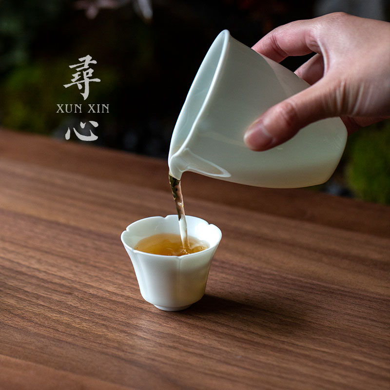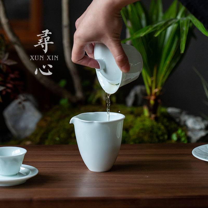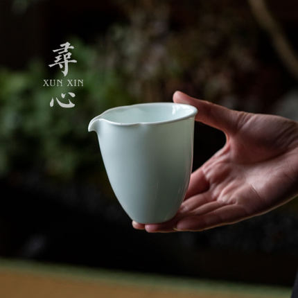 青瓷公道杯花口分茶器影青功夫茶陶瓷公杯茶海家用泡茶杯茶具配件