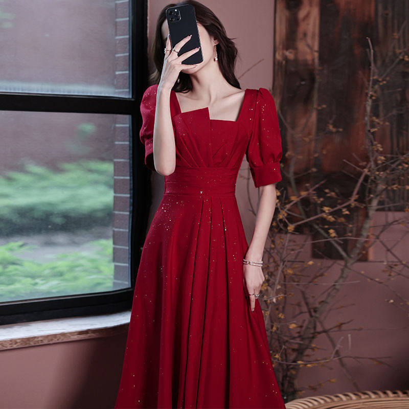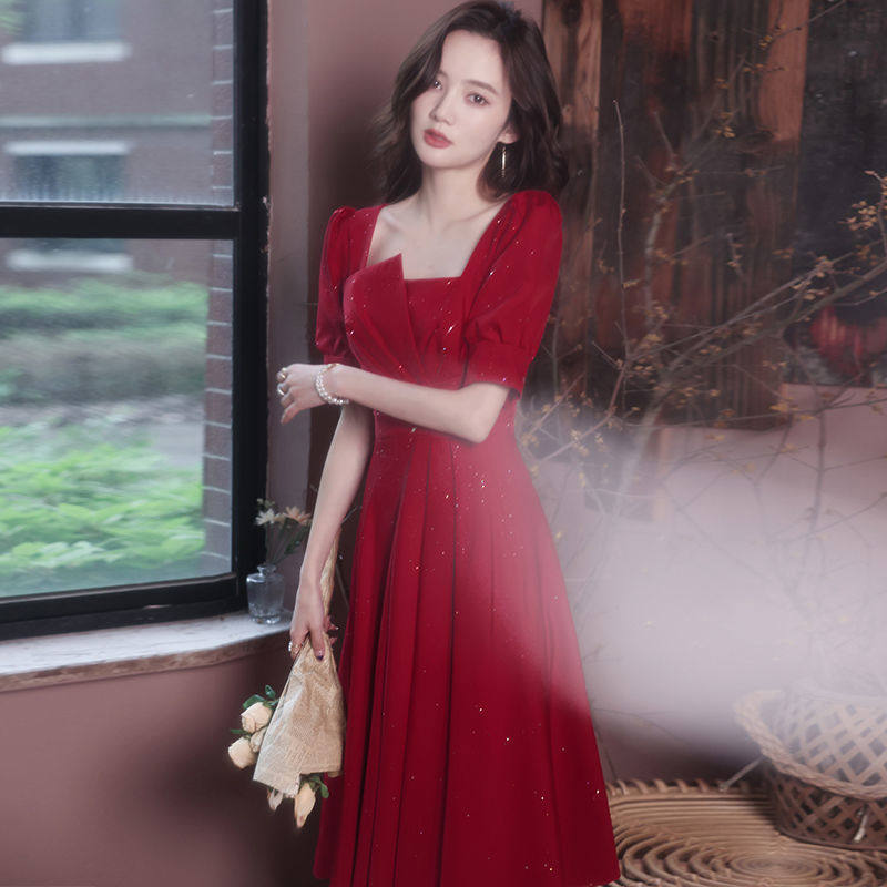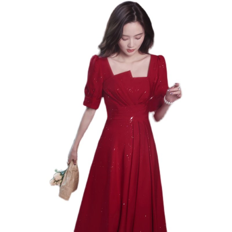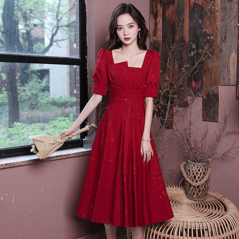 优雅敬酒服新娘2023新款红色平时可穿连衣裙小个子中长款订婚礼服