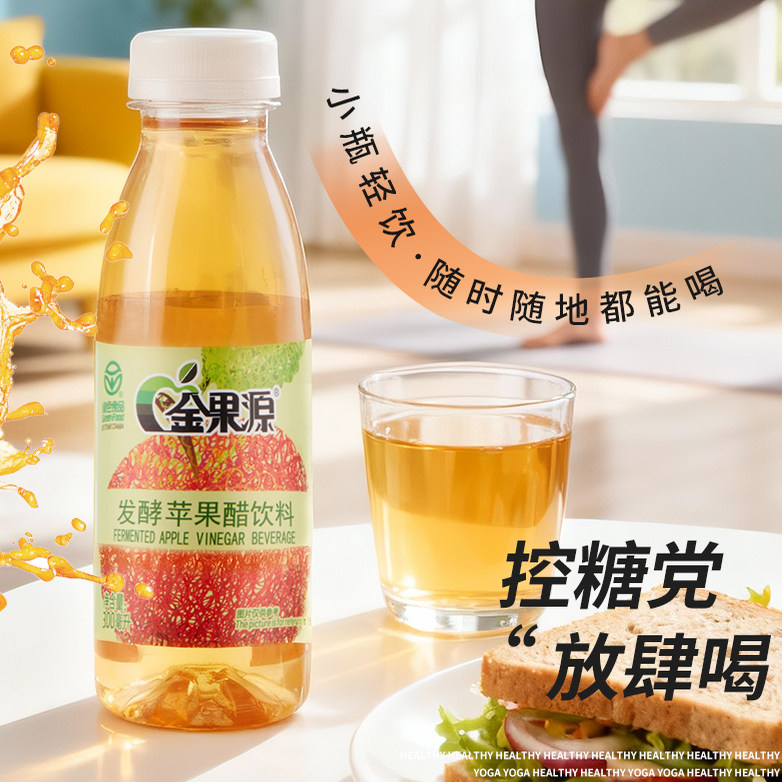 金果源 92%果汁二次发酵苹果醋饮料300ml*15饮品0脂肪0白砂糖整箱