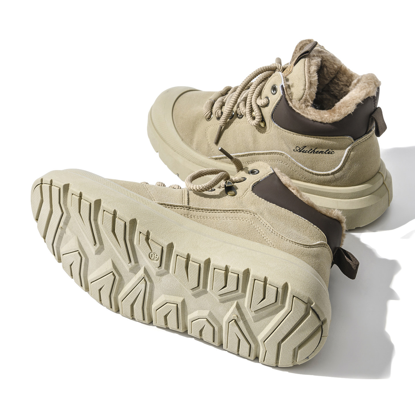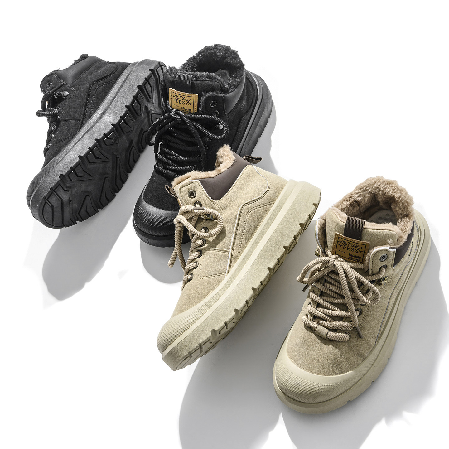 外贸男款2025年秋冬新款男士加绒保暖棉鞋休闲防滑短靴系带工装靴
