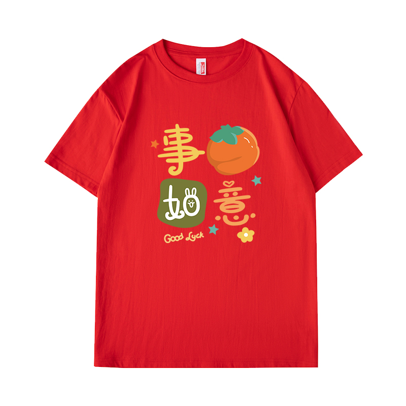 2026马年平安喜乐好事发生红色t恤定制本命年短袖新年亲子装男女