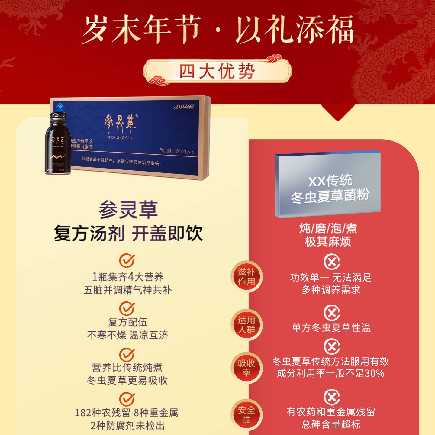 参灵草冬虫夏草灵芝西洋参口服液虫草饮滋补礼盒送父母中老年人