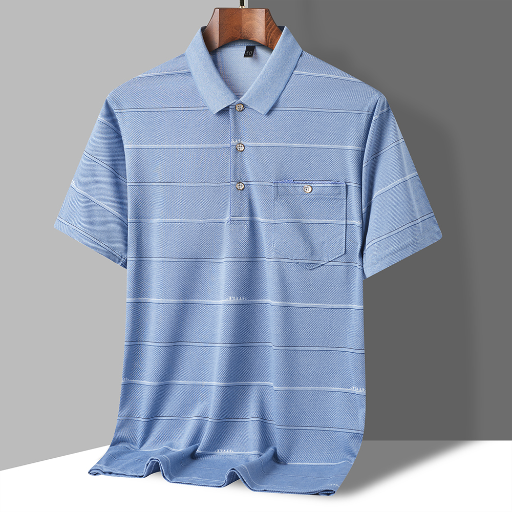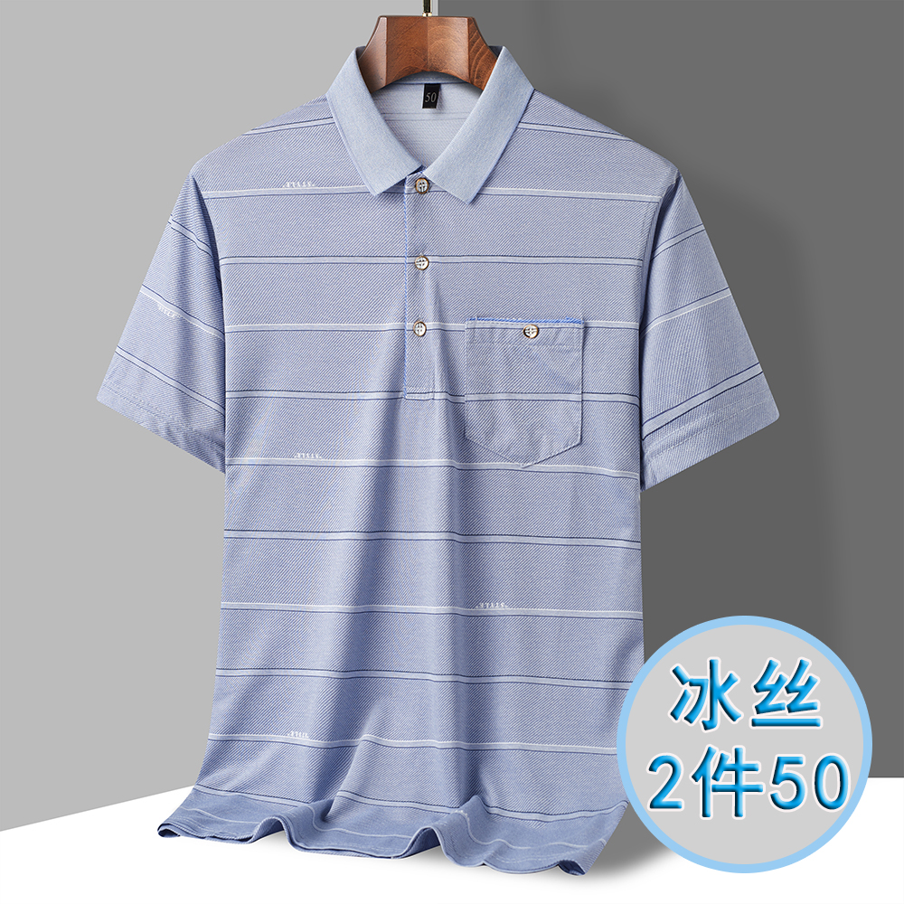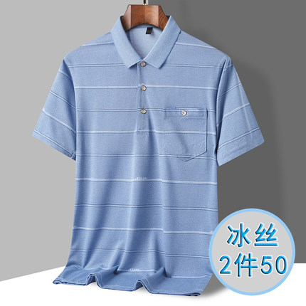 爸爸夏装短袖T恤冰丝透气中老年男真口袋POLO衫上衣中年休闲体恤