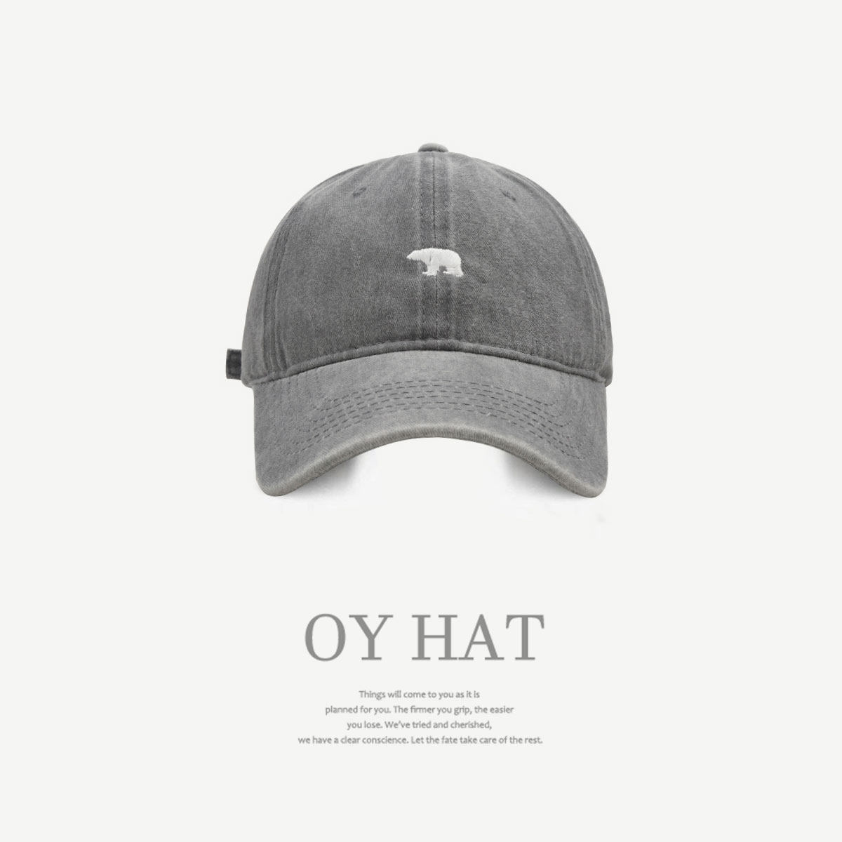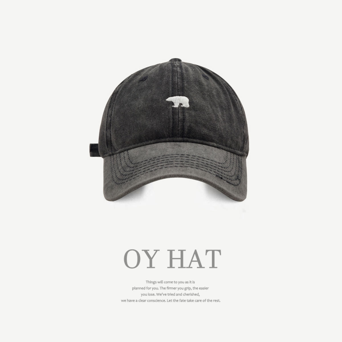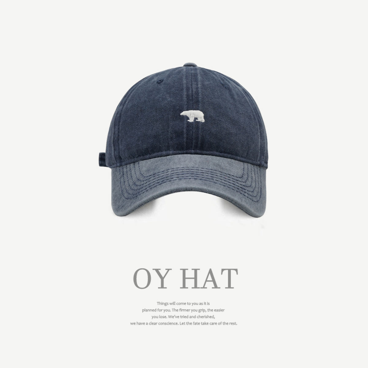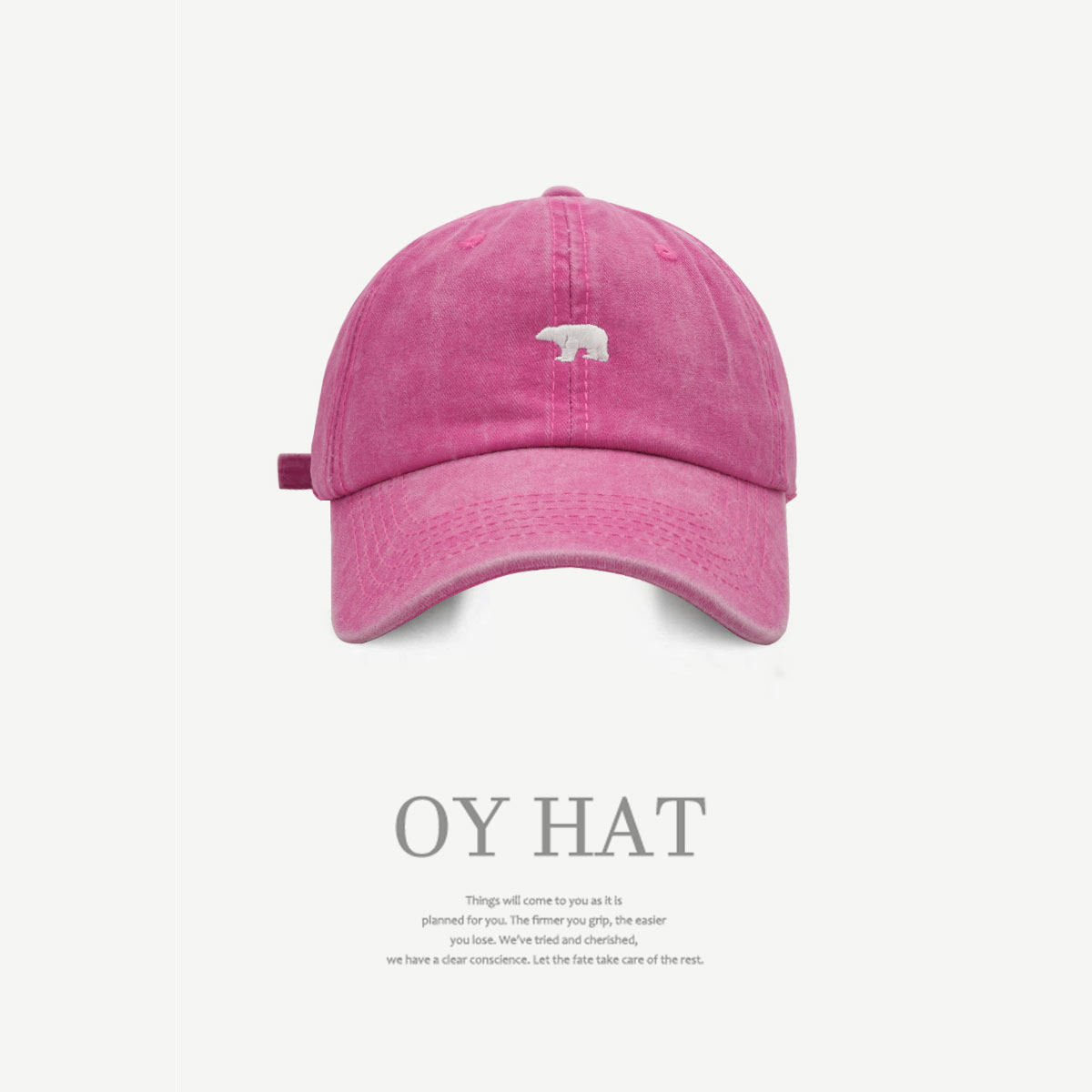 韩版复古粉色水洗棉棒球帽女春夏季遮阳帽显脸小北极熊刺绣鸭舌帽