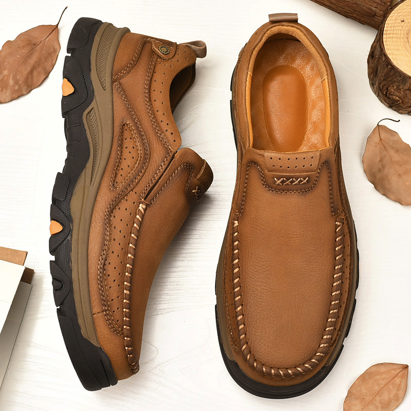 手工缝制男鞋秋冬季头层牛皮休闲皮鞋大头鞋防滑耐磨厚底鞋父亲鞋