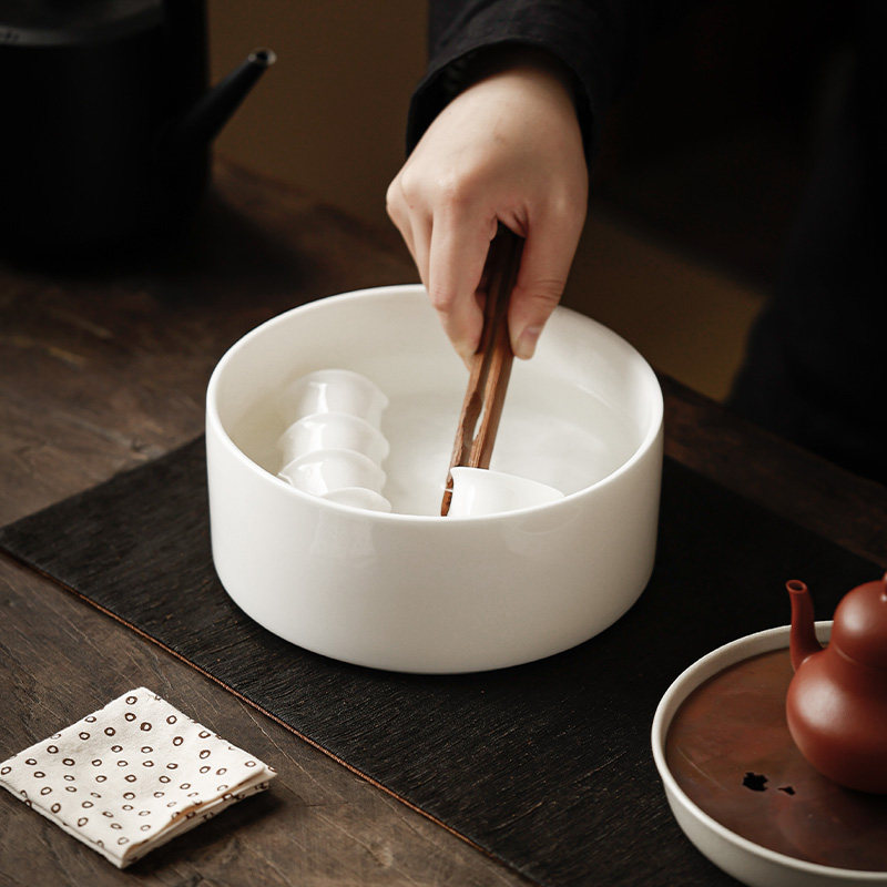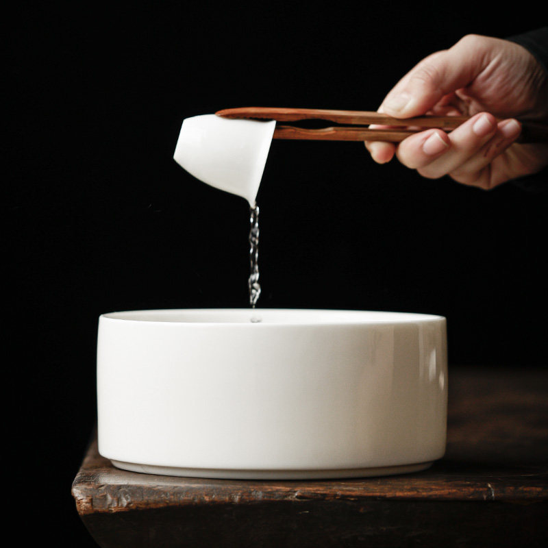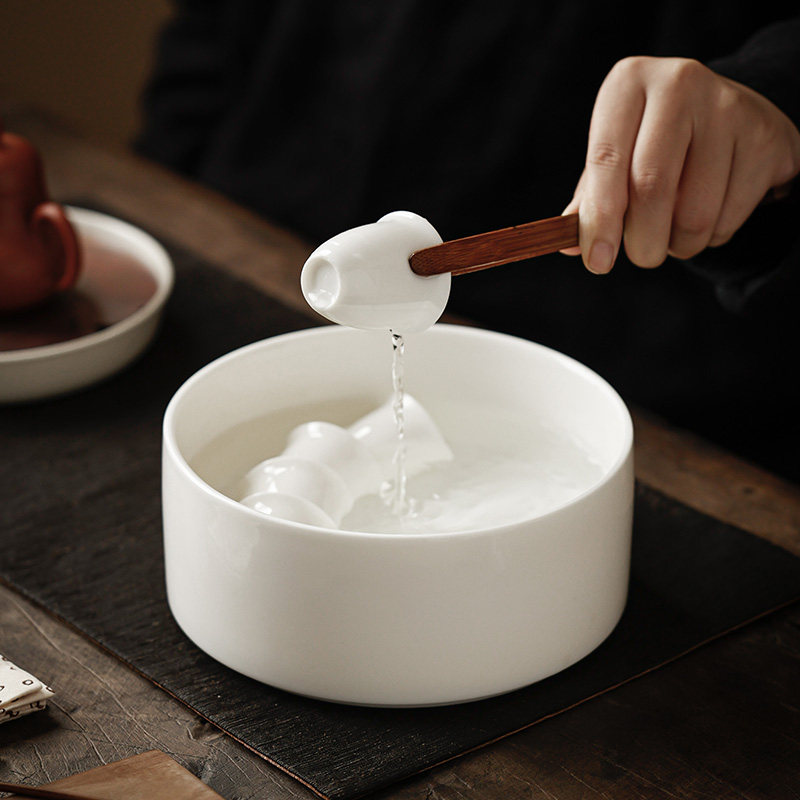 羊脂玉白瓷茶洗大号陶瓷高端茶洗笔洗水盂家用中式茶具配件茶渣缸