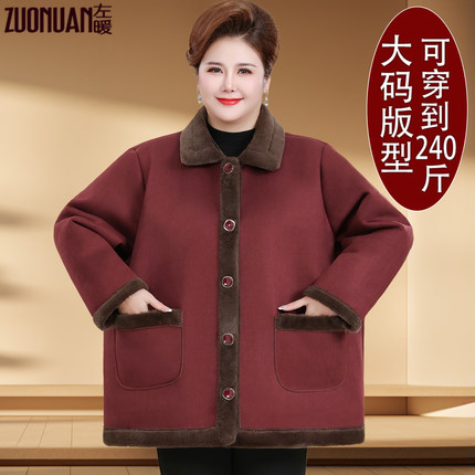 大码中老年女装加绒棉衣服厚外套