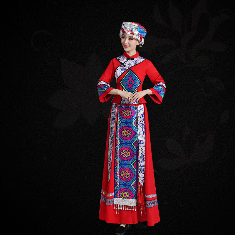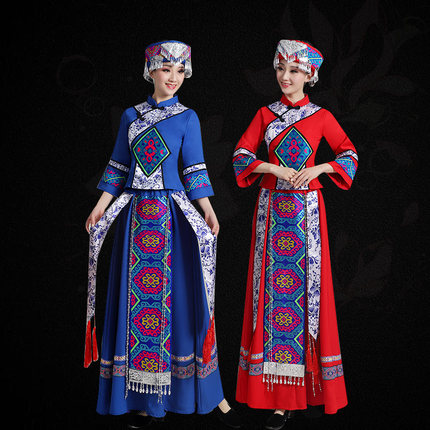 湘西少数民族土家族服装女苗族彝族演出服女盛装新长款舞蹈表演服