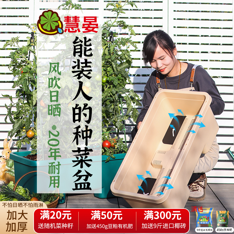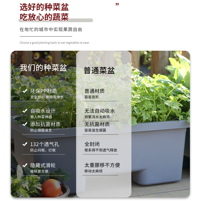 阳台专用种菜盆家用蔬菜种植箱特大塑料草莓长方形花盆轻奢高级感