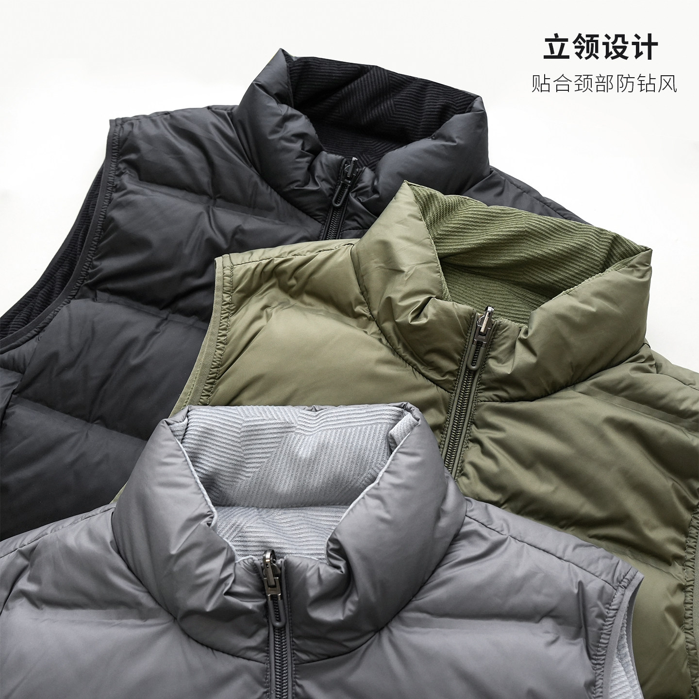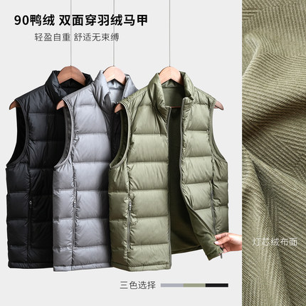 轻量化90鸭绒 双面穿保暖排骨羽绒服 男士柔软立领马甲 外套冬k