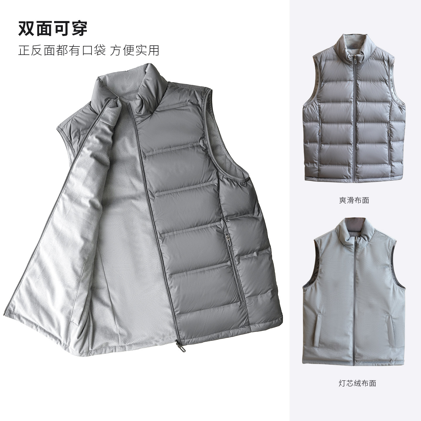 轻量90鸭绒双面穿排骨羽绒马甲