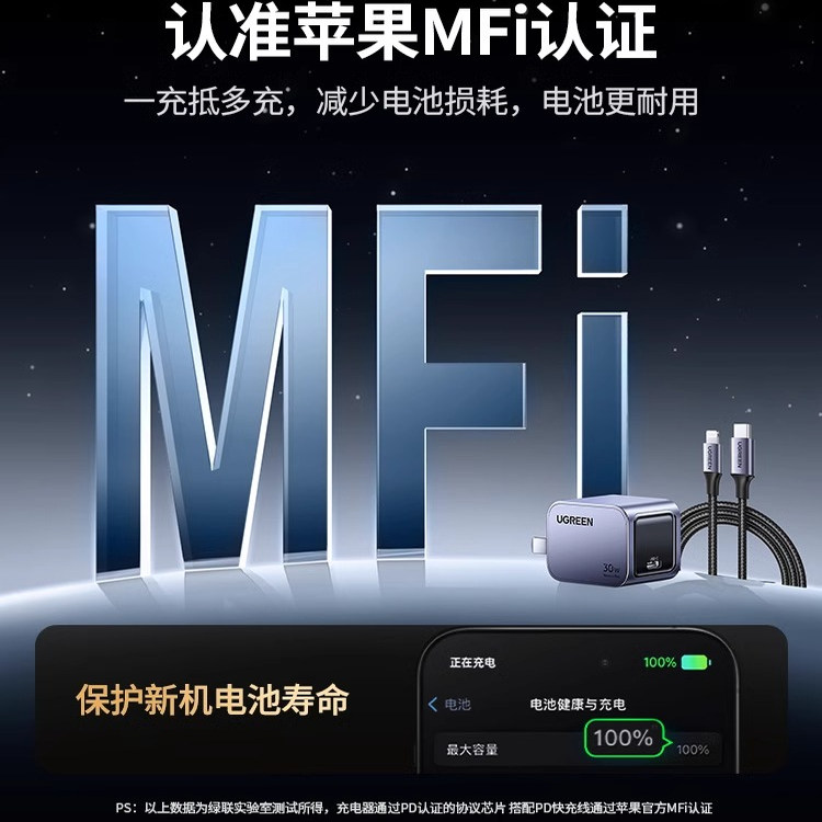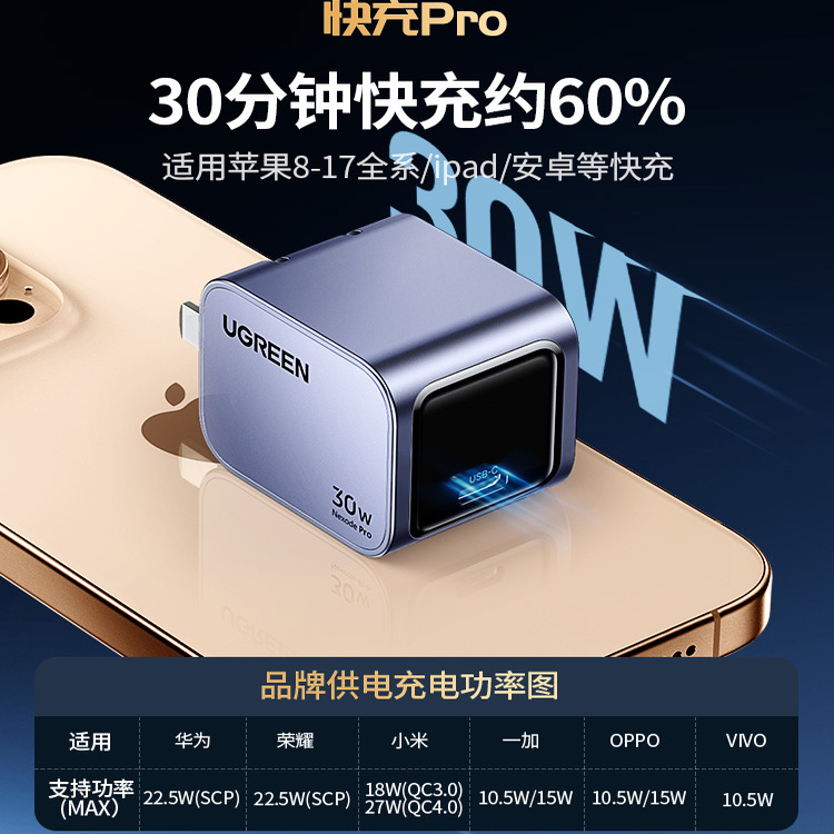 绿联30W氮化镓充电器适用苹果17air15promax华为iPhone16手机ipad通用PD快充套装typec单口插头闪充湃充电头