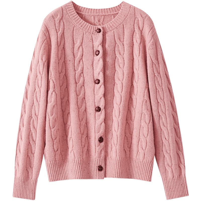 金菊多色可选!春秋麻花纯色圆领长袖纽扣开衫女式羊毛衫外套
