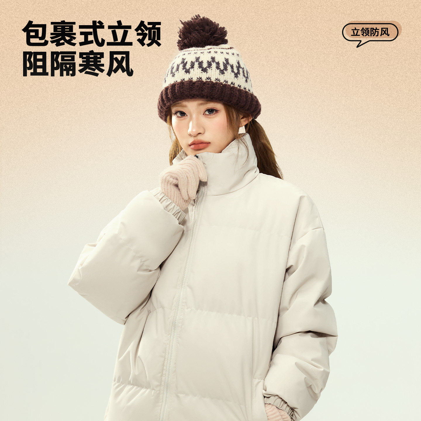回力潮牌立领加绒棉服男士