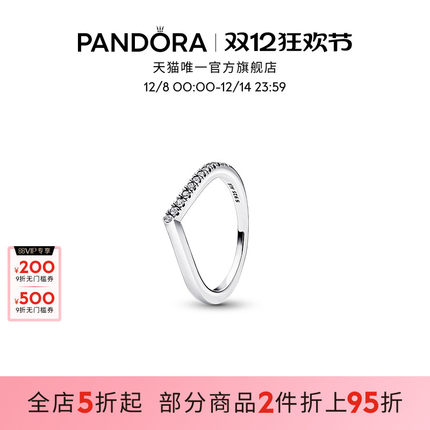 Pandora潘多拉单边密镶许愿骨素圈戒指轻奢礼物