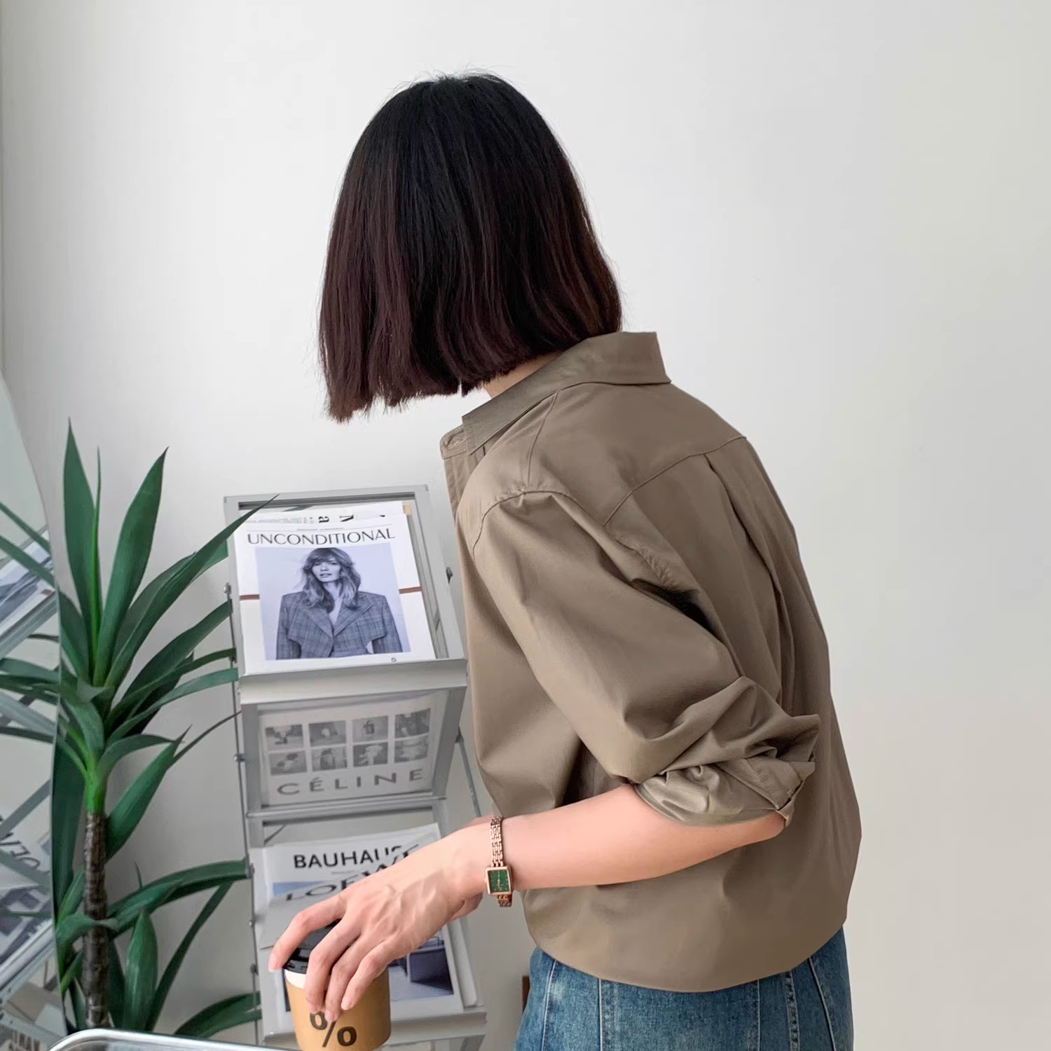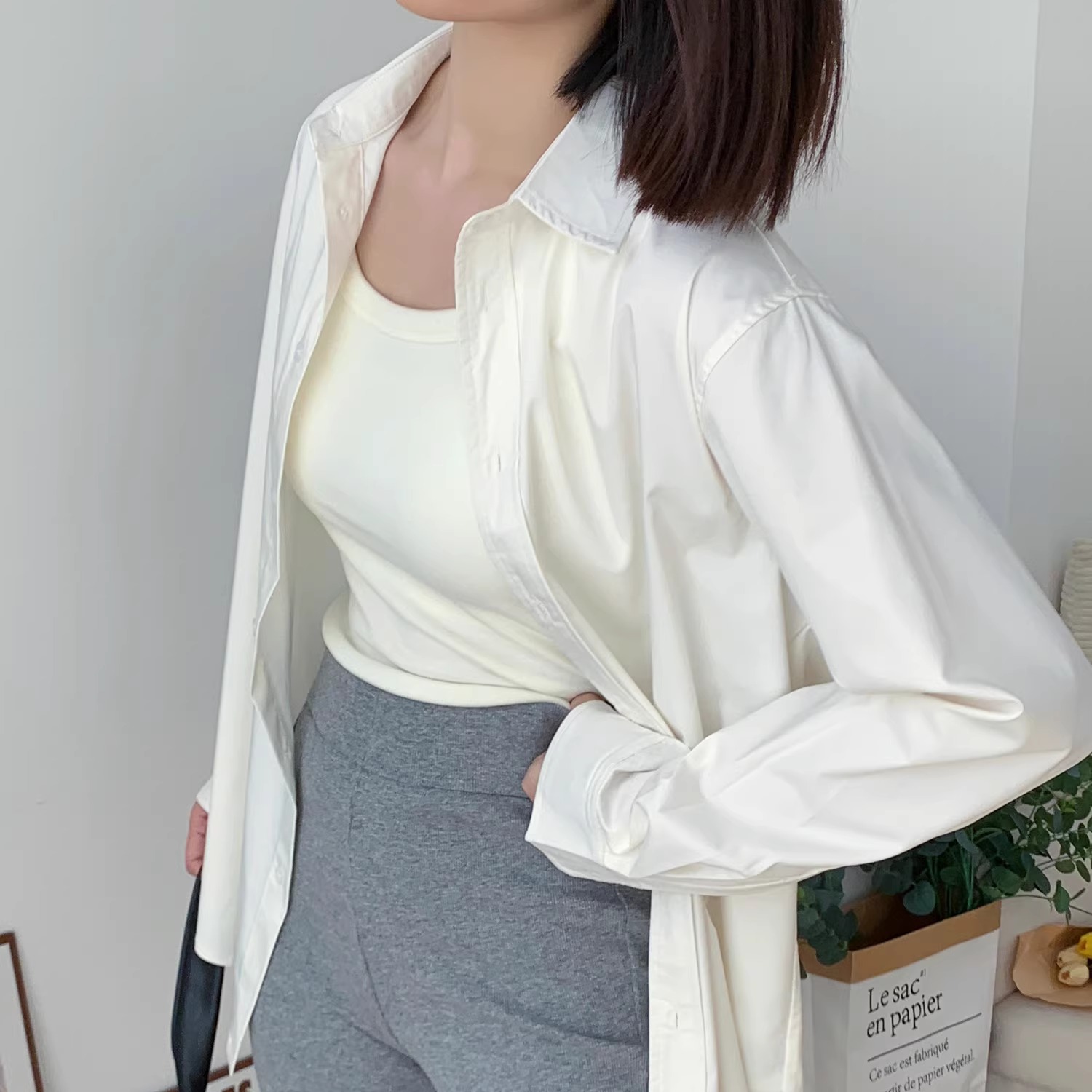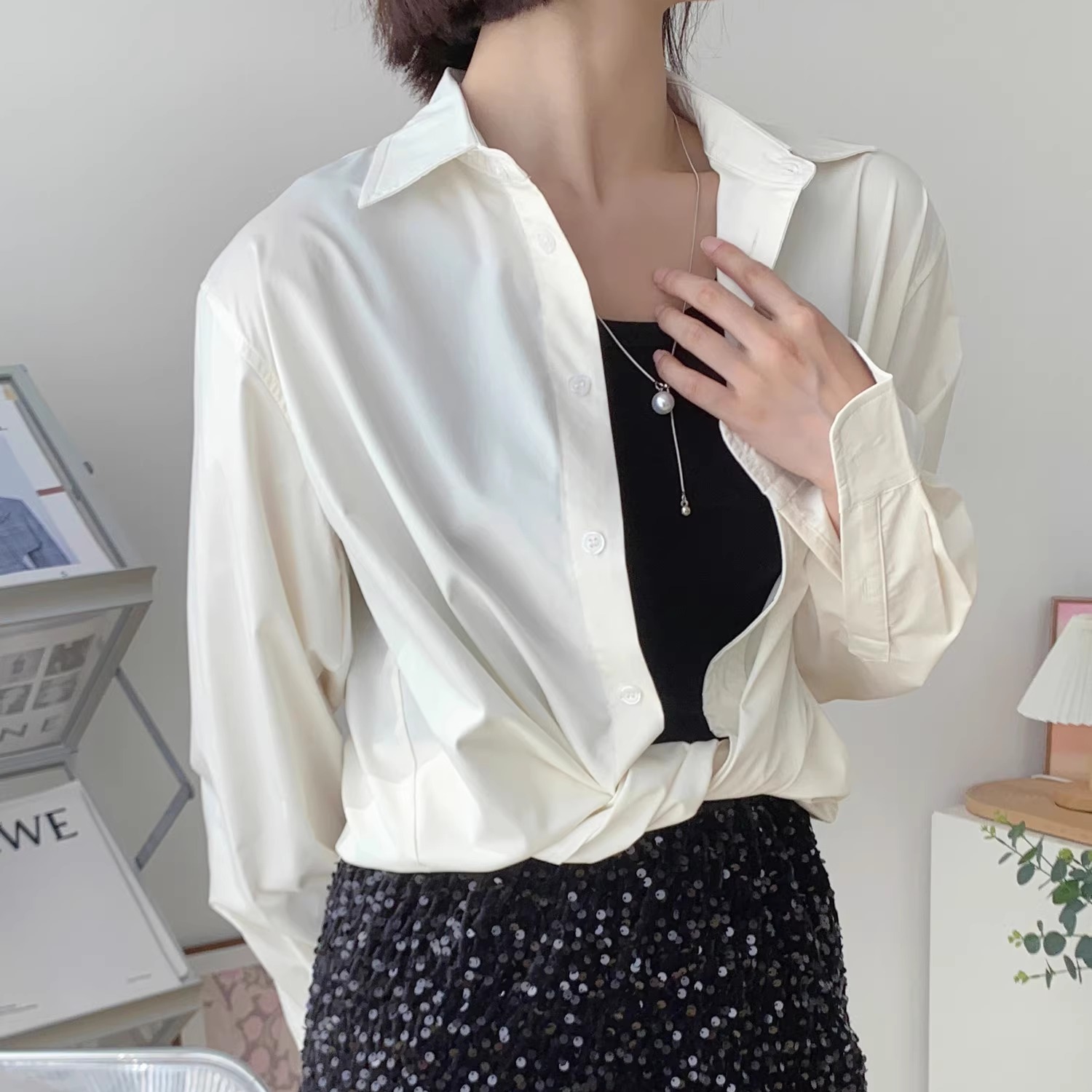阿瑞家 经典穿搭的主心骨 奶油白深卡其爽滑抗皱翻领宽松休闲衬衫