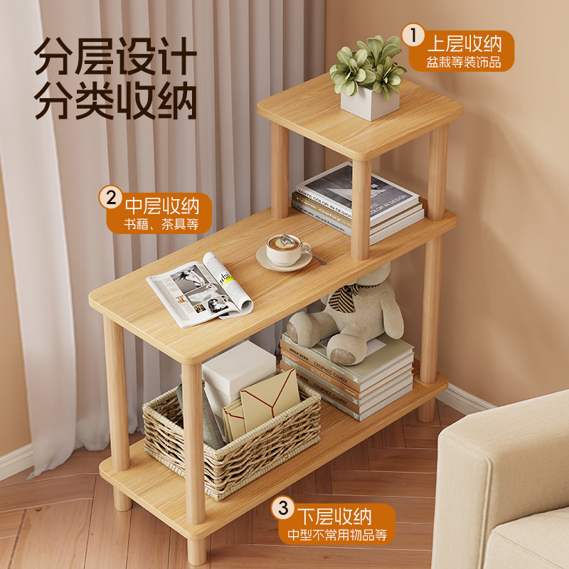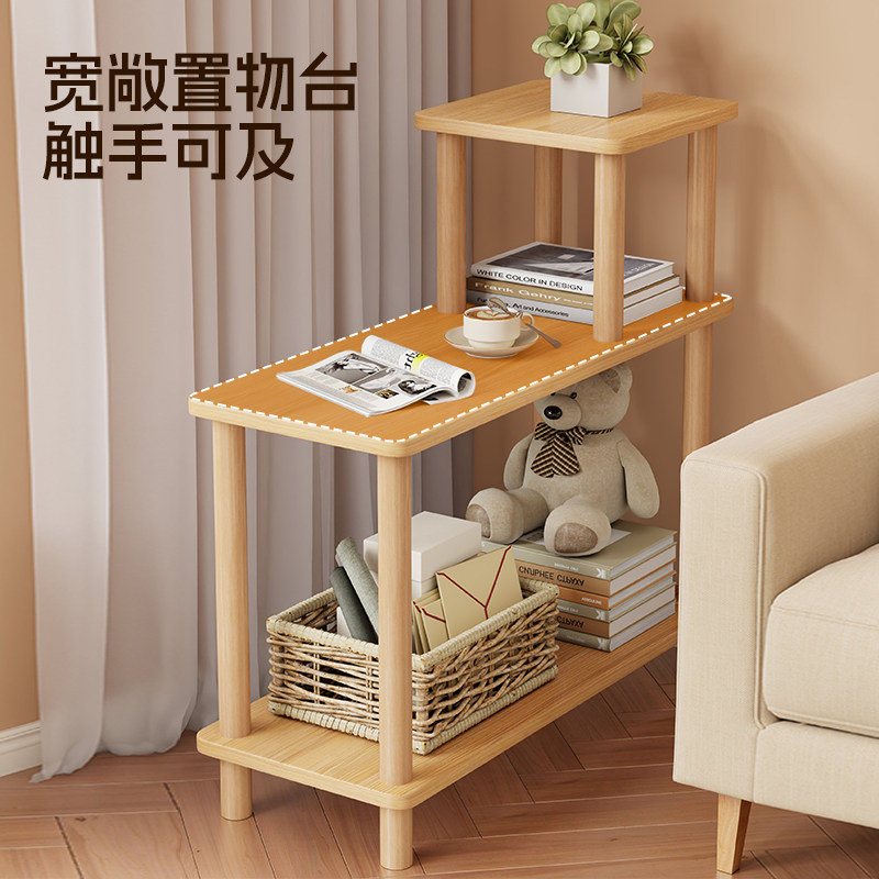实木沙发边柜简易落地小茶几卧室床头柜分层置物架阳台休闲小桌子