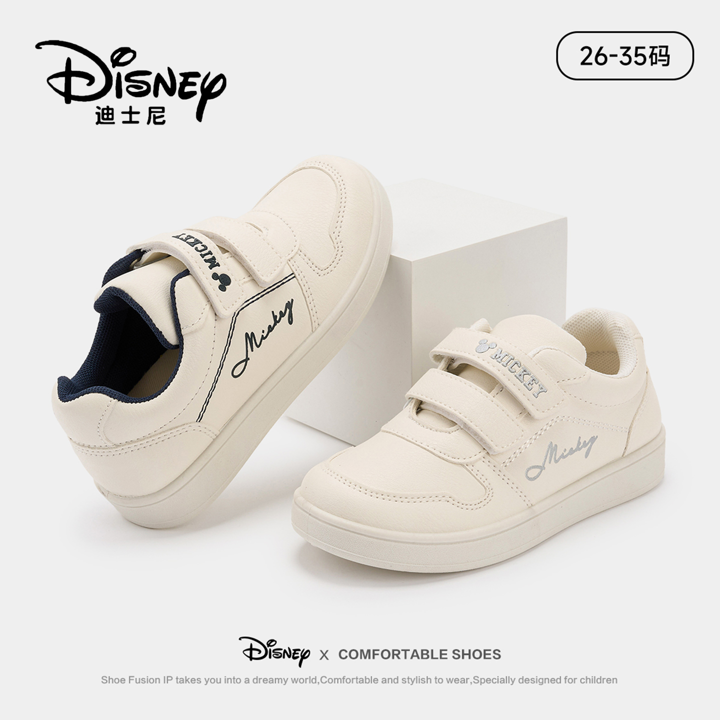 迪士尼儿童小白鞋2025春秋季女童板鞋皮面防水中大童男童运动鞋子