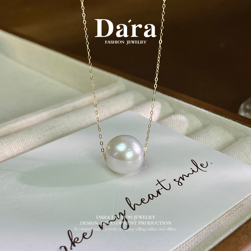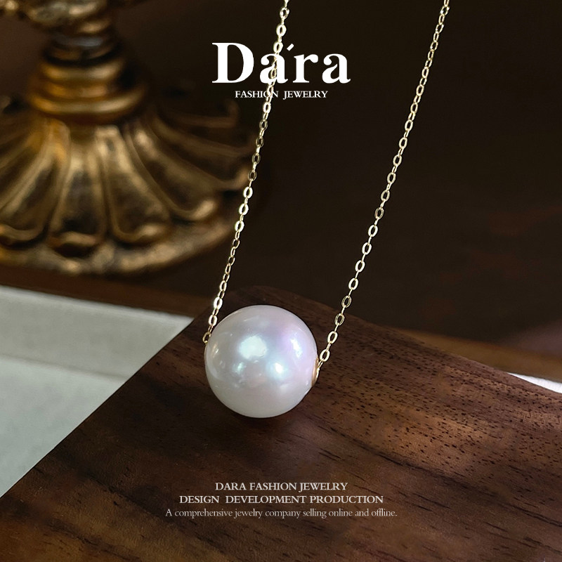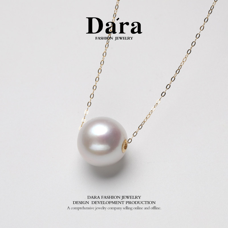DARA戴拉18K金淡水珍珠13-14mm正圆路路通吊坠项链锁骨链送女友